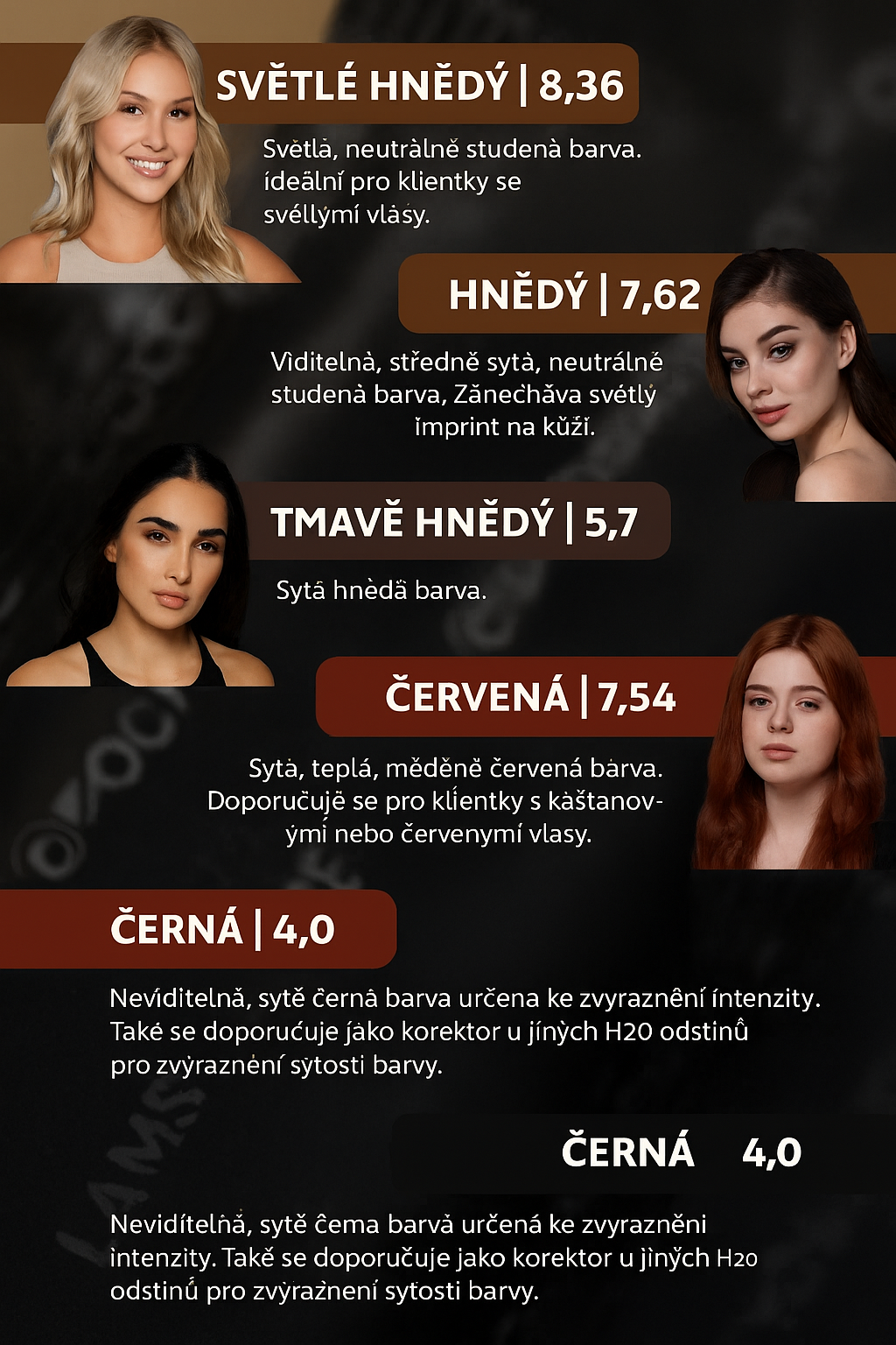 • 5 odstínů v paletě (Light Brown, Brown, Dark Brown, Red, Black)